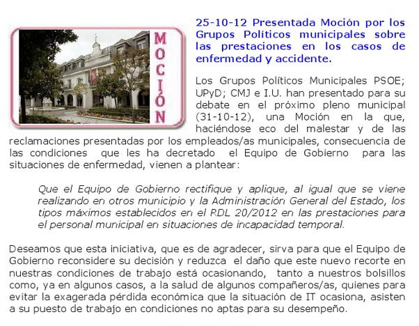 | 25/10/2012 | Moción en el pleno sobre ITs |