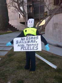 Hoy no hemos tenido reunión por la celebración del pleno, pero al terminar el mismo, desde el Ayuntamiento se han puesto en contacto con nosotros para intentar acercar su postura hacia nuestros planteamientos. Es cierto que, en el fondo del asunto, vamos acercando las posiciones en determinados aspectos: aceptan el calendario propuesto por nosotros y hoy, una reducción de jornada del 4% nocturnidad + 2% turnicidad + 1% festividad. NO VAMOS A SOMETERLA A APROBACIÓN VUESTRA EN ASAMBLEA por parecernos inaceptable por las siguientes razones: 1.- En cuanto al fondo, al contenido de la propuesta: 2.- En cuanto a la forma del posible acuerdo, pretenden que llegando a un acuerdo en el calendario y en la reducción de jornada, que firmemos un Acuerdo de Funcionarios total para los próximos 2 años. Evidentemente no podemos estampar nuestra firma en una serie de recortes que plantean en su propuesta de acuerdo (ayudas sociales, permisos, distribución irregular, etc) y mucho menos por que, con nuestra firma, legitimaríamos lo expuesto en el apartado anterior. A partir de nuestra firma, cuando a alguno nos denieguen un día por que sí como ahora, el culpable no sería el gestor como ahora, sino "el sindicato que lo ha firmado". Por todo esto, pese a los avances y al no haber llegado al acuerdo, nos hemos ofrecido para seguir negociando todo lo que haga falta, desde ahora mismo hasta cuando haga falta. Eso sí, le hemos recordado que a partir del 1 de Enero debemos retomar las medidas de protesta, ya que la gente empieza un calendario peor todavía y no podemos tirarnos el año que viene de reuniones y los policías en las condiciones penosas actuales. Nosotros hemos propuesto que, para evitar situaciones desagradables que vuelvan a romper las negociaciones, podemos seguir negociando para llegar a un acuerdo global en Enero como quiere el Ayuntamiento, sin prisa o con prisa, PERO siempre y cuando modifiquen el calendario actual por el que proponemos. Así que por nuestra parte, nada más podemos hacer en esta fase de momento mientras no se pronuncien, quedamos a la espera de que hagan lo que crean conveniente: nos llamen antes del día 31, adecuen el calendario o acepten negociar en enero bajo medidas de protesta. |