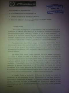| 21/03/2013 | Escrito a la consejería de presidencia de la C.A.M | ||||||||||