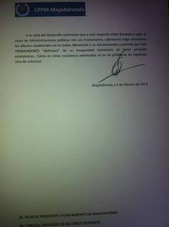 Os adjuntamos la primera salida a prensa de la denuncia interpuesta contra el alcalde D. Narciso de Foxá, que como venimos reiterando desde este conflicto laboral que inició el Equipo de Gobierno, nosotros asumimos las condiciones discriminatorias y de semiesclavitud a las que nos tienen sometidos, pero la otra parte tendrá que asumir sus responsabilidades por ello y trataremos que tengan la correspondiente repercusión mediática. Y la respuesta del Ayuntamiento, siguiendo la estela de criminalización de cualquier movimiento que opine en contra suya (o del partido) que realizan últimamente: |