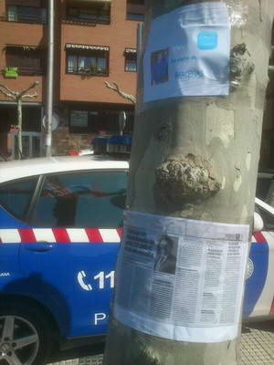 Ayer Jueves estuvimos por la mañana repartiendo por la Gran Via los carteles en tamaño folio que os adjuntamos aquí. Luego estuvimos poniéndolos en los coches estacionados en el hospital, como veis en las fotos que os adjuntamos. En total se repartieron unos 300 panfletos. |