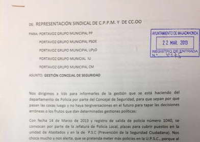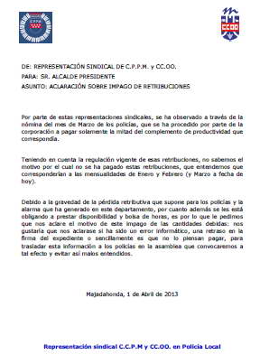 | 27/03/2013 | Nota de prensa: sindicato policial denuncia a Alcalde de Majadahonda | ||||||||||