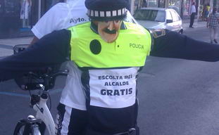 Este domingo día 15, por la mañana se celebra el Día de la Bicicleta como todos los años en las fiestas. Hemos pensado que tanto que le gusta al Alcalde llevar escoltas, le vamos a poner uno gratis: nuestro muñeco Pepito, que no cobra plus de escolta y puede seguirle todas las horas que haga falta. Los que podáis asistir, el domingo por la mañana, entre las 10:30 y la 13:00 más o menos, comunicárnoslo, por mail, whatsapp o personalmente. |