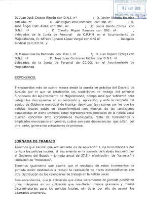 Os adjuntamos el escrito que registramos ayer con carácter urgente, viendo los derroteros de abuso y desprecio que en la gestión de los policías, se está haciendo por parte del Concejal y sus secuaces interesados en la policía. |