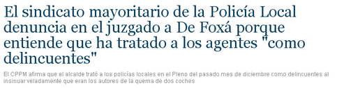 | 19/03/2013 | Los conflictos en Policía Local crispan el ambiente y empiezan a a fectar a la seguridad ciudadana | ||||||||||