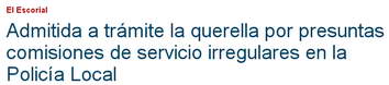 | 26/07/2013 | Admitida a trámite querella en El Escorial por cobrar complementos que no se realizan | ||||||||||