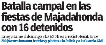 | 24/09/2013 | Noticia incidentes fiestas de Majadahonda | ||||||||||