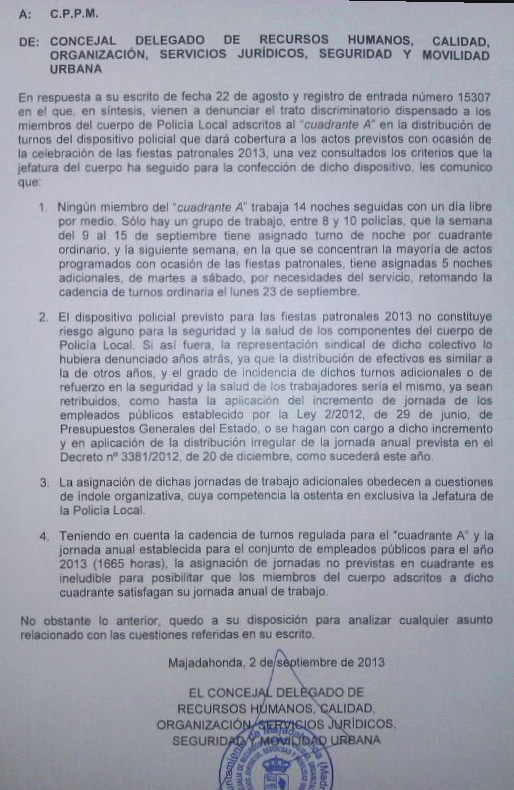 | 06/09/2013 | Escrito del concejal de seguridad y contestación | ||||||||||