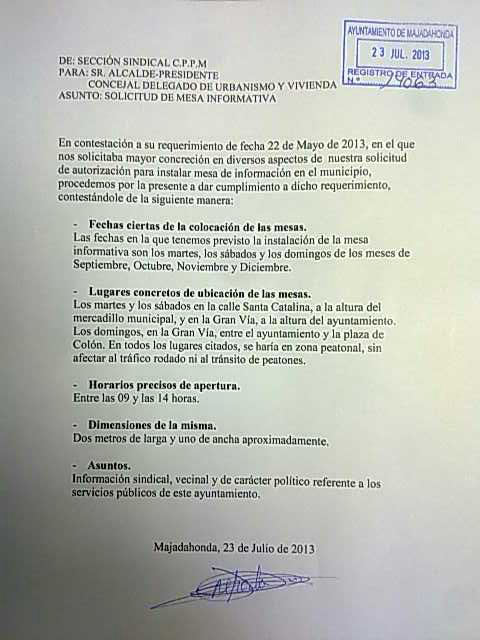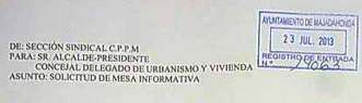 | 22/08/2013 | Nuevo escrito al Ayuntamiento | ||||||||||
