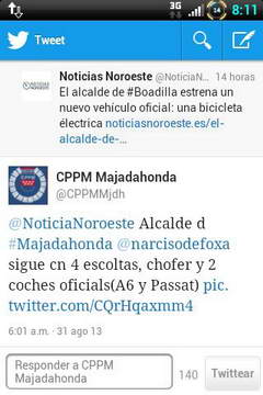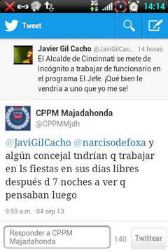 Os adjuntamos algunos pantallazos de las conversaciones mantenidas en Twitter con nuestro querido Alcalde, un concejal de la oposición o algún vecino del municipio.