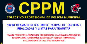 Se ha celebrado la primera reunión de la Comisión Paritaria, con el siguiente orden del día: 1º Constitución de la Comisión.- Después de llevar desde el 2013 sin comisión paritaria por haber sido eliminada por el Decreto de Alcaldía, se incluyó por nuestra parte en el Acuerdo de Funcionarios la creación de la misma, como órgano de vigilancia, seguimiento, interpretación y aplicación de lo establecido en el mismo. Por tanto, es un órgano importante dentro de las funciones sindicales para velar por el cumplimiento de lo acordado. Por parte de la representación de funcionarios, hoy hemos acudido: Se establece que dentro de la constitución de la Comisión Paritaria, los 5 miembros en representación de los funcionarios será en proporción a los delegados obtenidos en la Junta de Personal, quedando del siguiente modo: 3 miembros de CPPM, 1 miembro de CSIF y 1 miembro de Manos Limpias. 2º Aprobación de préstamos.- 3º Pago de transporte.- Se da cuenta y aprueba el cambio de domicilio de varios compañeros a efectos de distancia para el plus de transporte. 4º Ruegos y preguntas.- * Por parte de C.S.I.F., se solicita interpretación de las necesidades del servicio que justifican la inclusión de algunos días de trabajo dentro del mes de julio y agosto en el calendario de sargentos (que por nuestra parte ampliamos también al de especialidades). |