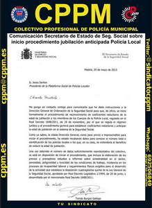 | 25/05/2015 | Comunicación Secretario Estado Seguridad Social sobre inicio procedimiento jubilación Policía Local | ||||||||||||||||||||||||