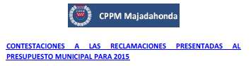 | 01/01/2015 | Contestaciones a reclamaciones al presupuesto municipal | ||||||||||||||||||||||||