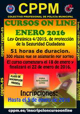 Adjuntamos cartel de oferta de curso on-line sobre actualización de la Ley Orgánica de Protección de la Seguridad Ciudadana de CPPM para AFILIADOS. |