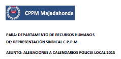 Os informamos de lo tratado en la comisión paritaria del día 9 de Julio. Asistentes: Se aprueban todas las solicitudes presentadas, menos 2 facturas pasadas de fecha de 2014, un líquido de lentillas, una garantía de montura de gafas y quedan pendientes de discusión la inclusión de infiltraciones de Ácido Hialurónico para la artrosis, que no se encuentra por parte del departamento de RRHH encaje como tratamiento y unas bolsas de frio-calor que dudan si es material ortopédico. 2º) Préstamos.- Tras los préstamos aprobados en la comisión paritaria anterior, solo quedan 3 solicitudes pendientes en lista de espera por no llegar el saldo actualmente. 3º) Plazo presentación ayudas sociales.- Se establece como fecha límite para la presentación de solicitudes el 11/12/15. 4º Ruegos y preguntas.- * Por parte de CPPM solicitamos contestación al ruego realizado en la anterior comisión paritaria, sobre el informe del departamento de RRHH respecto a la posibilidad del disfrute de vacaciones en turno de noche, contestando el Director de RRHH que hoy emitirá dicho informe a la Jefatura de Policía. * Por parte de CPPM solicitamos interpretación ahora en comisión paritaria de la denegación en comisión de formación, de la compensación de tiempo por formación online al personal del ayuntamiento, reiterándose el departamento de RRHH en su oposición a ello. |