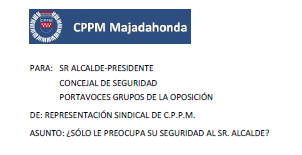 Ayer martes 17/02 acudimos como viene siendo habitual todos los meses a la Comisión Informativa de Régimen Interior, la cual preside el Concejal de Personal y asisten los Concejales del Equipo de Gobierno y de los grupos de la oposición. Nuestra intervención de ayer se centró en el turno de ruegos y preguntas: 1) Para ir preparando la habitual guerra de todos los años respecto a la paga de productividad del mes de mayo, donde cada año tenemos que aguantar las habituales amenazas de que no se va a pagar porque es ilegal la productividad sin estar debidamente justificada y viendo que entre la documentación de esta comisión había varios expedientes de pago de productividad a diversos empleados municipales, entre ellos el cuchi 2 de policía,... PREGUNTAMOS: ¿Dónde están los expedientes que aprueban y justifican el pago del plus de productividad de los escoltas del alcalde? 2) Después del tercer escrito registrado la semana pasada dirigido al Alcalde, sobre el asunto del parking de los policías en dependencias, |
